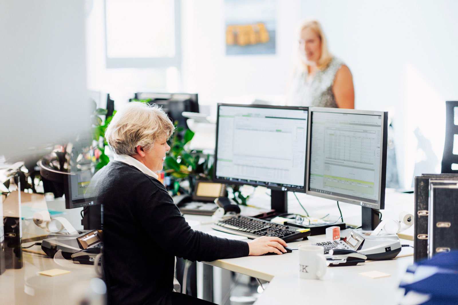 Jeder Arbeitsplatz ist mit modernem Equipment (2 große Monitore sind selbstverständlich) ausgestattet. Auf individuelle Bedürfnisse wird selbstverständlich eingegangen.